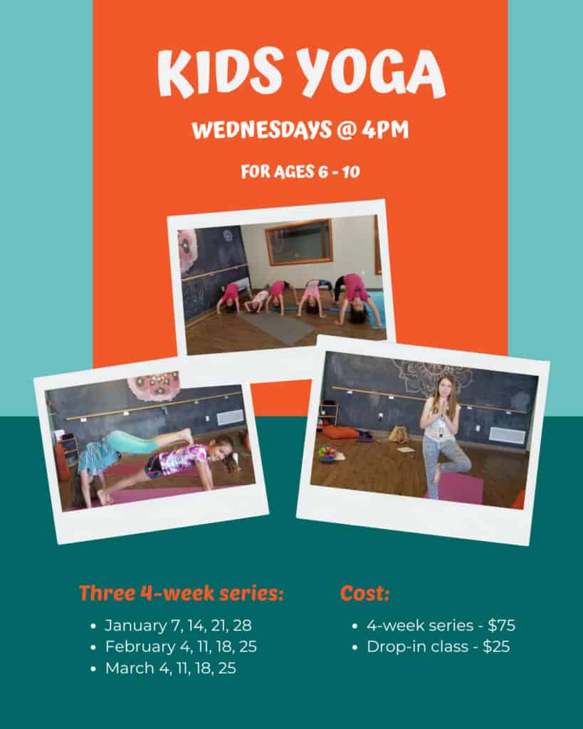 These classes are held in a series format for different age groups. Kids will explore yoga poses, breathing exercises, and meditation techniques that cater to the varying interests, energies, and developmental stages of the children.